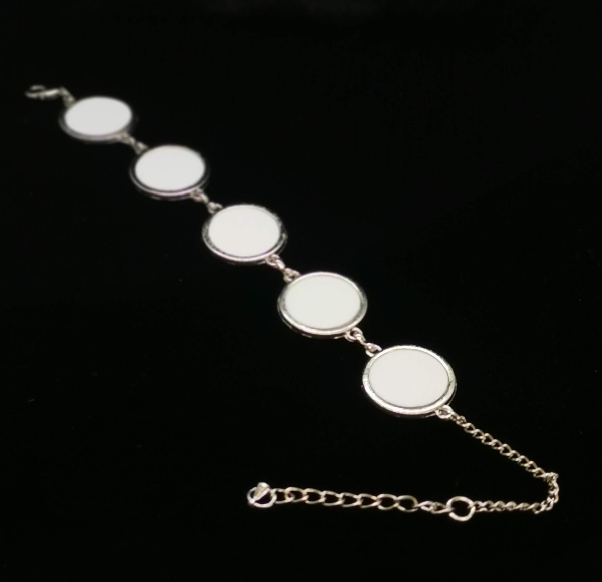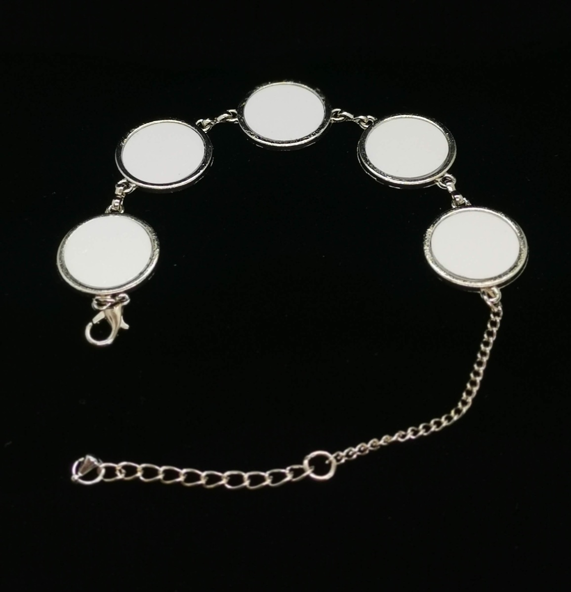 Elevate your style with our Bracelet with Five Circle Charms. This elegant piece features five polished circular charms, perfect for personalization with your favorite images, designs, or meaningful messages. Whether as a thoughtful gift or a unique addition to your jewelry collection, this bracelet offers a timeless and versatile design that complements any outfit. Ideal for showcasing cherished memories or artistic expressions, it’s a beautiful accessory for any occasion.
