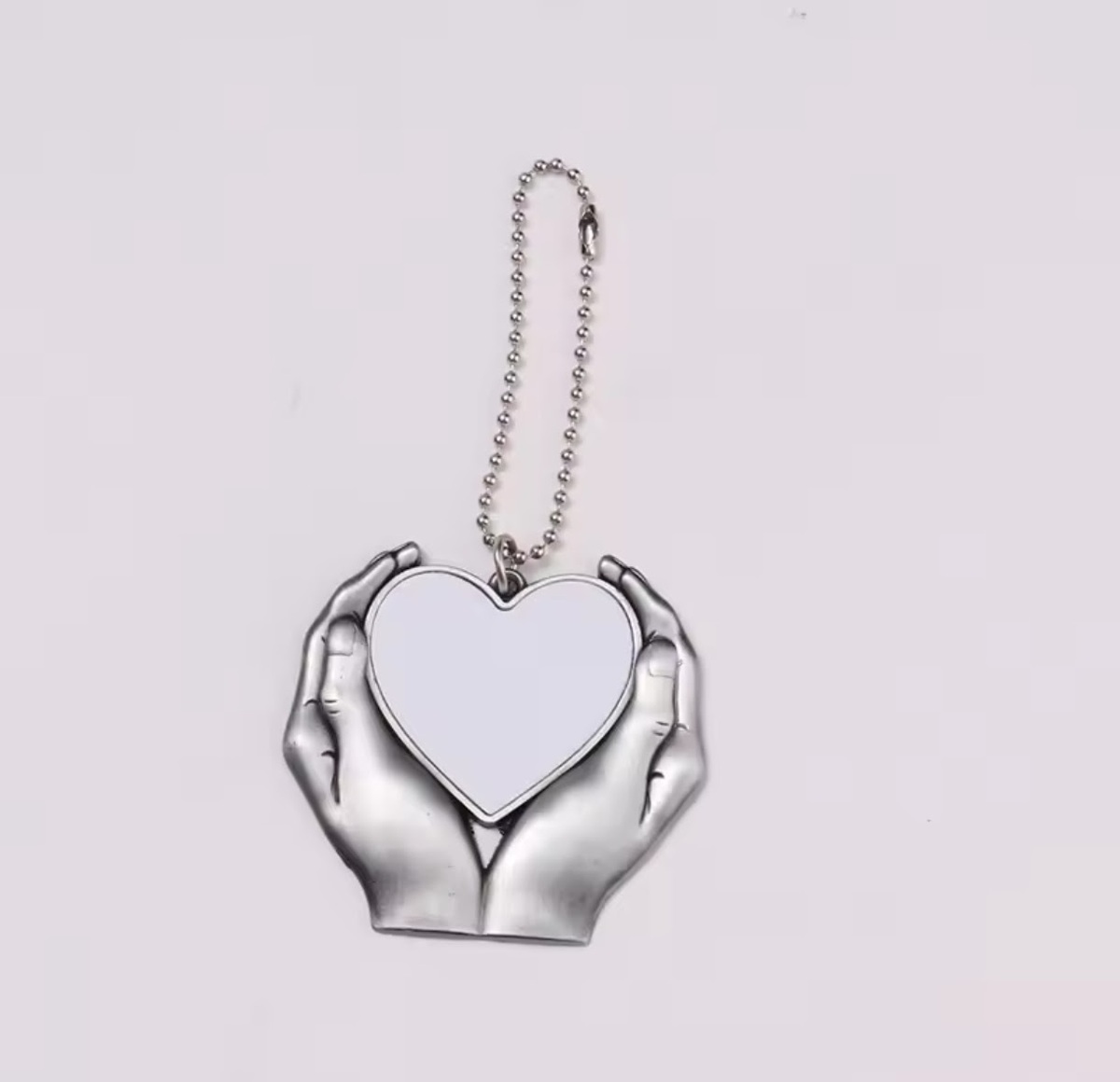 Carry a symbol of love and care with our elegant silver-colored keyring, measuring 6cm x 6cm. This beautifully crafted accessory features two hands gently holding a heart, representing compassion and connection. The heart has a special space for a custom picture, allowing you to personalize it with a cherished photo or meaningful image. Perfect as a gift for someone special or as a keepsake for yourself, this keyring combines thoughtful design with personal expression.