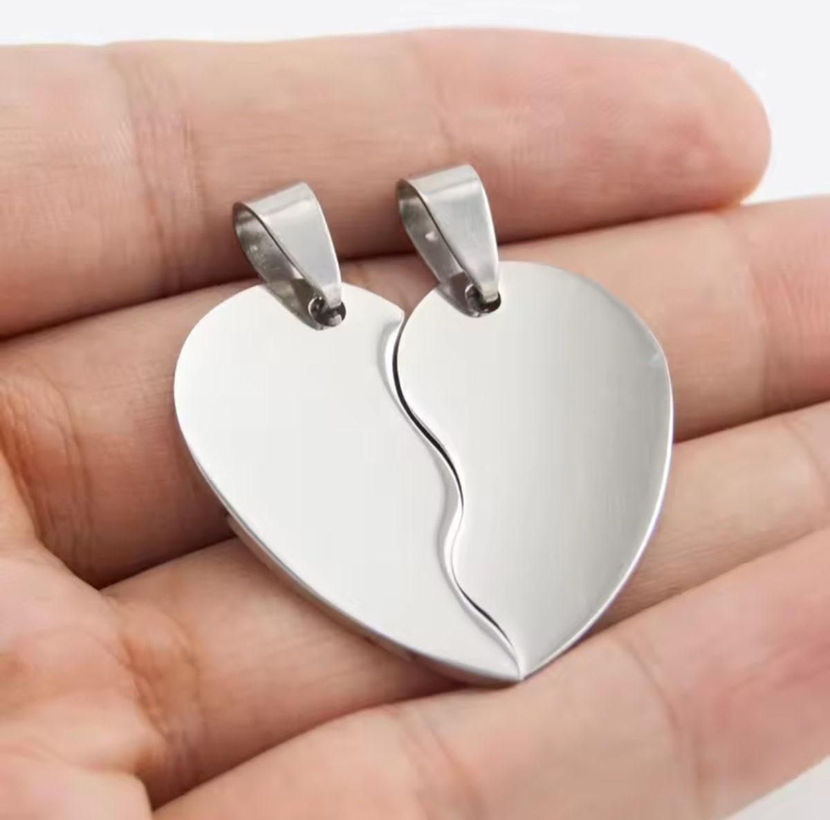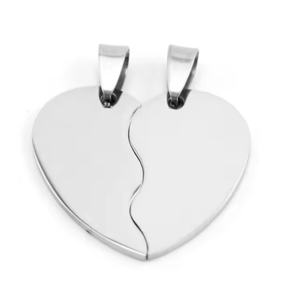 Celebrate love and connection with our unique heart necklace that splits into two separate pendants, perfect for couples. This thoughtfully designed piece allows each partner to carry half of the heart, symbolizing the unbreakable bond between you. Crafted for elegance and durability, the necklaces can be laser-engraved with your custom design, such as initials, meaningful dates, or special symbols, making it a truly personal keepsake. Share this beautiful expression of love and keep each other close, no matter the distance.