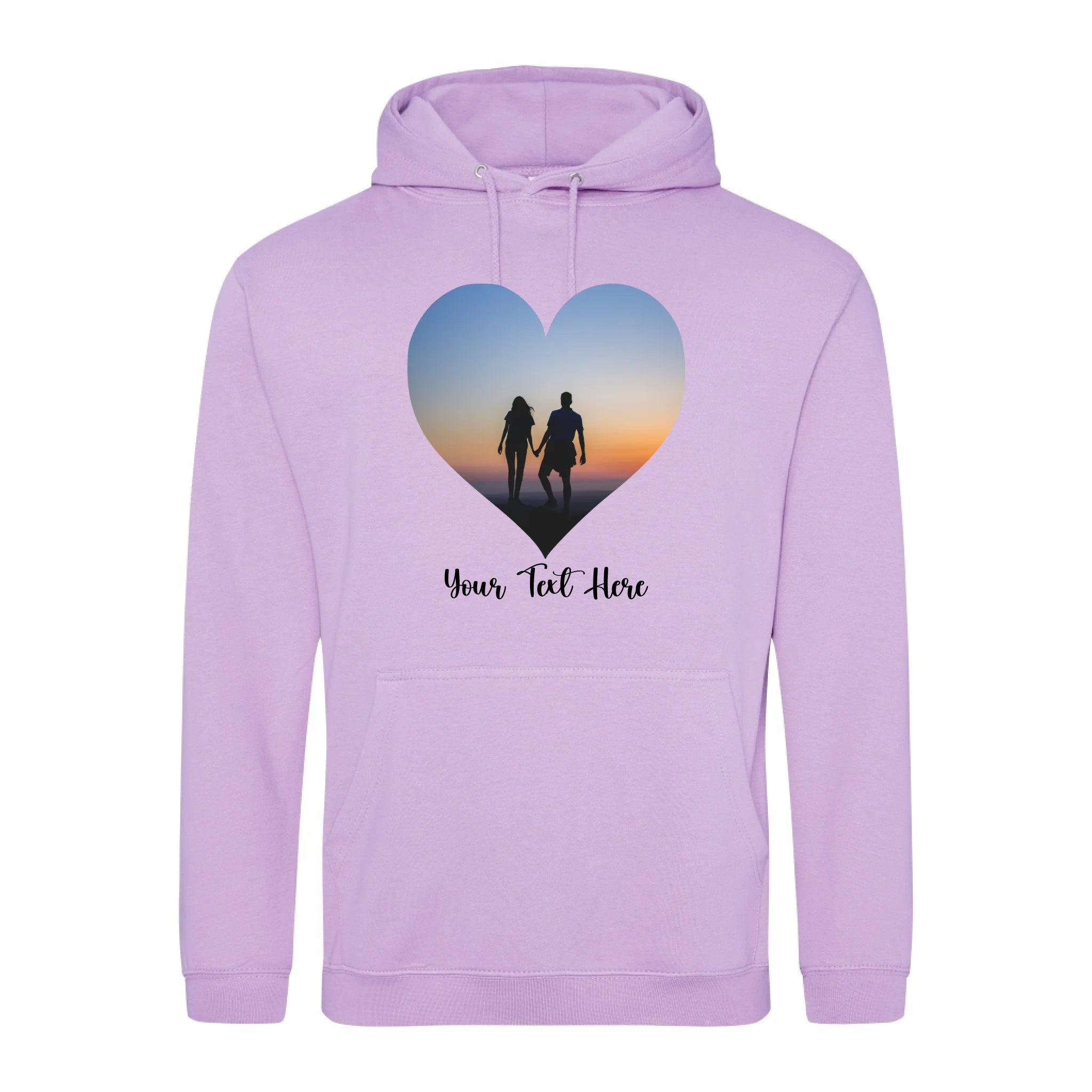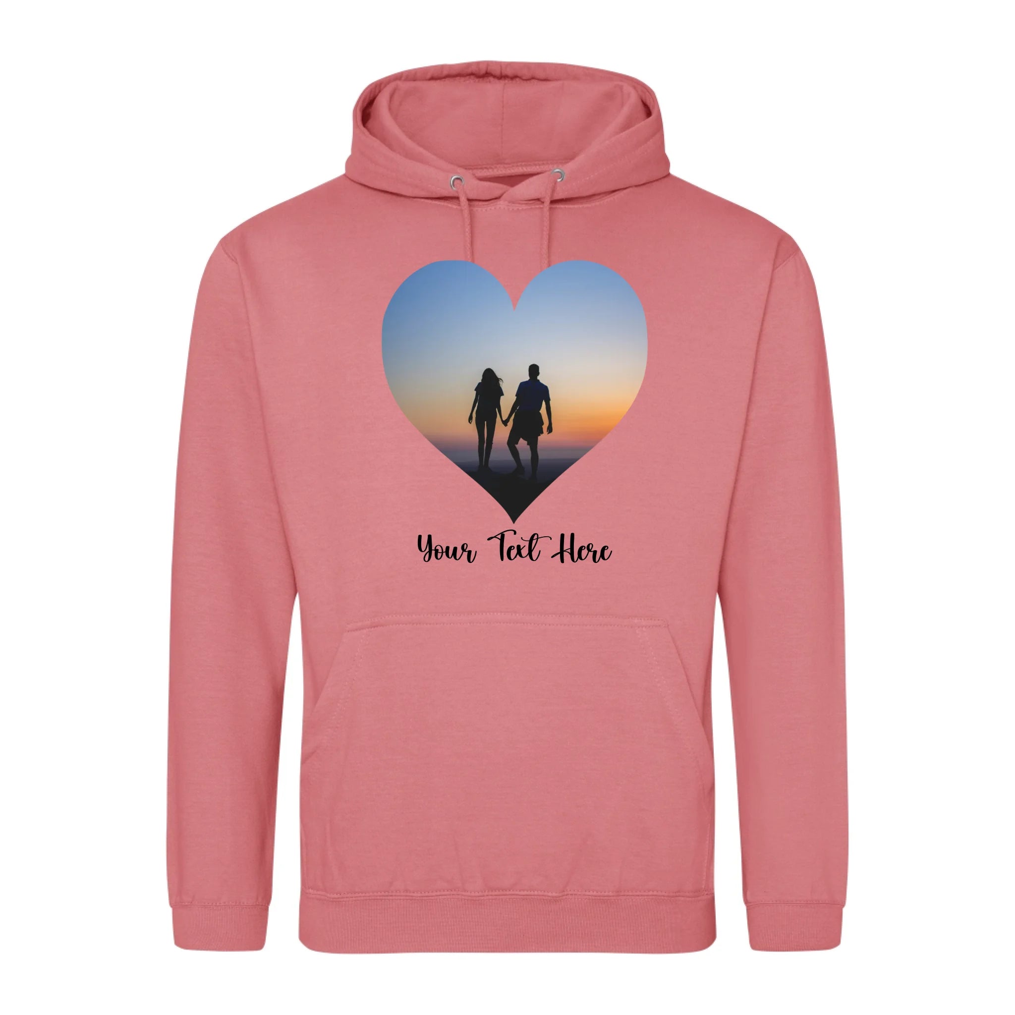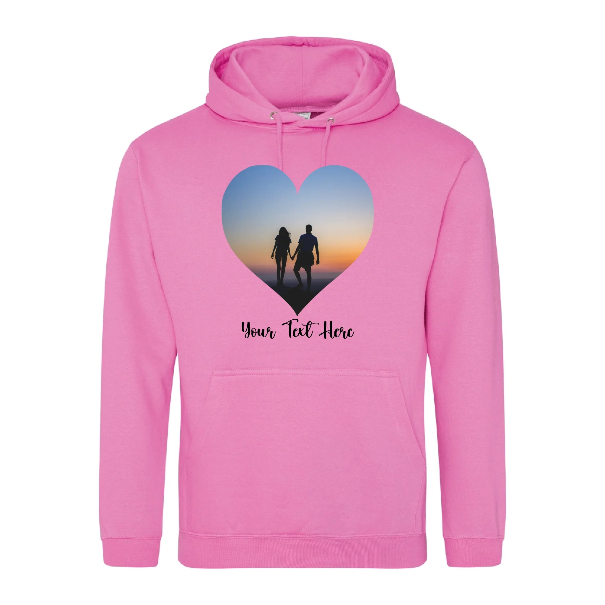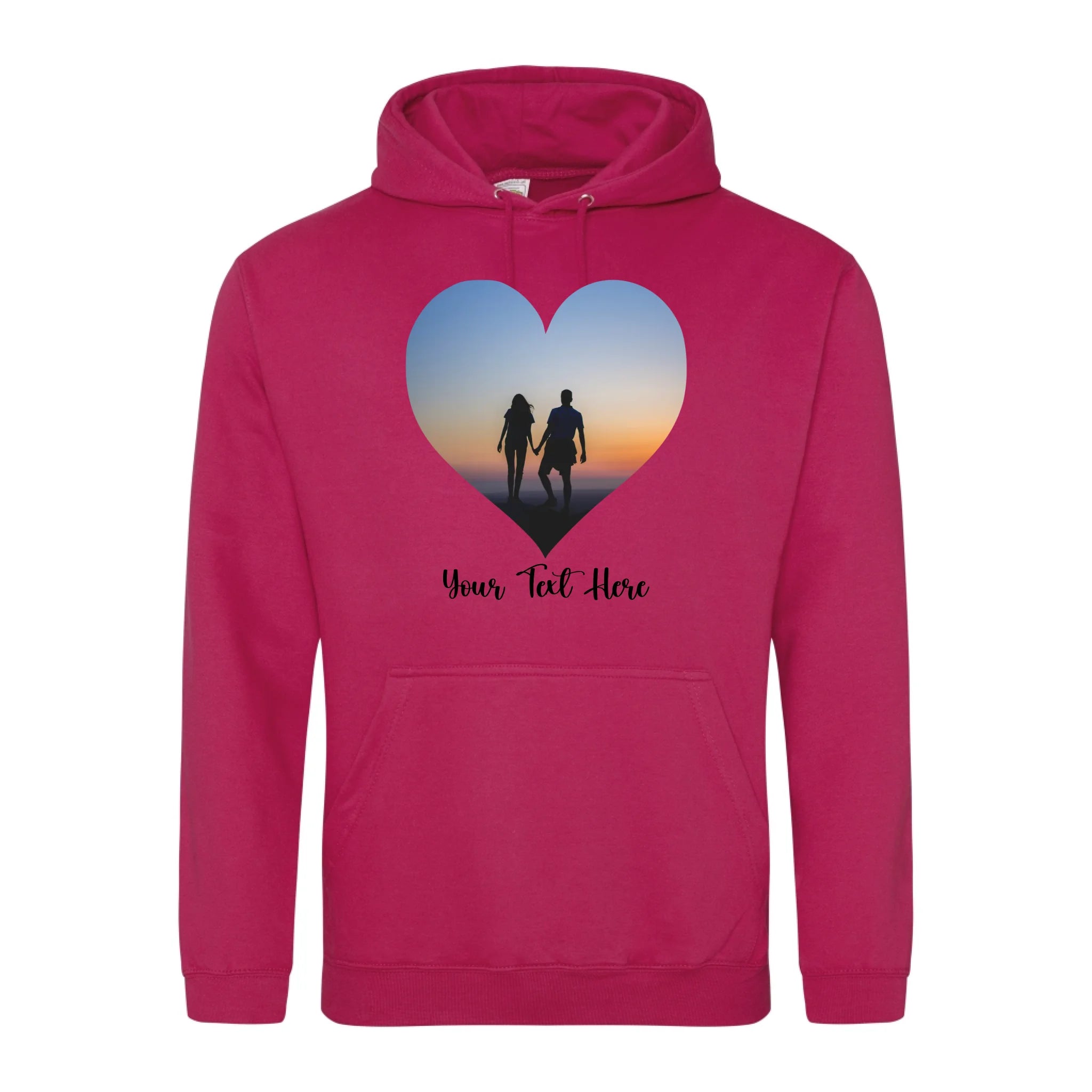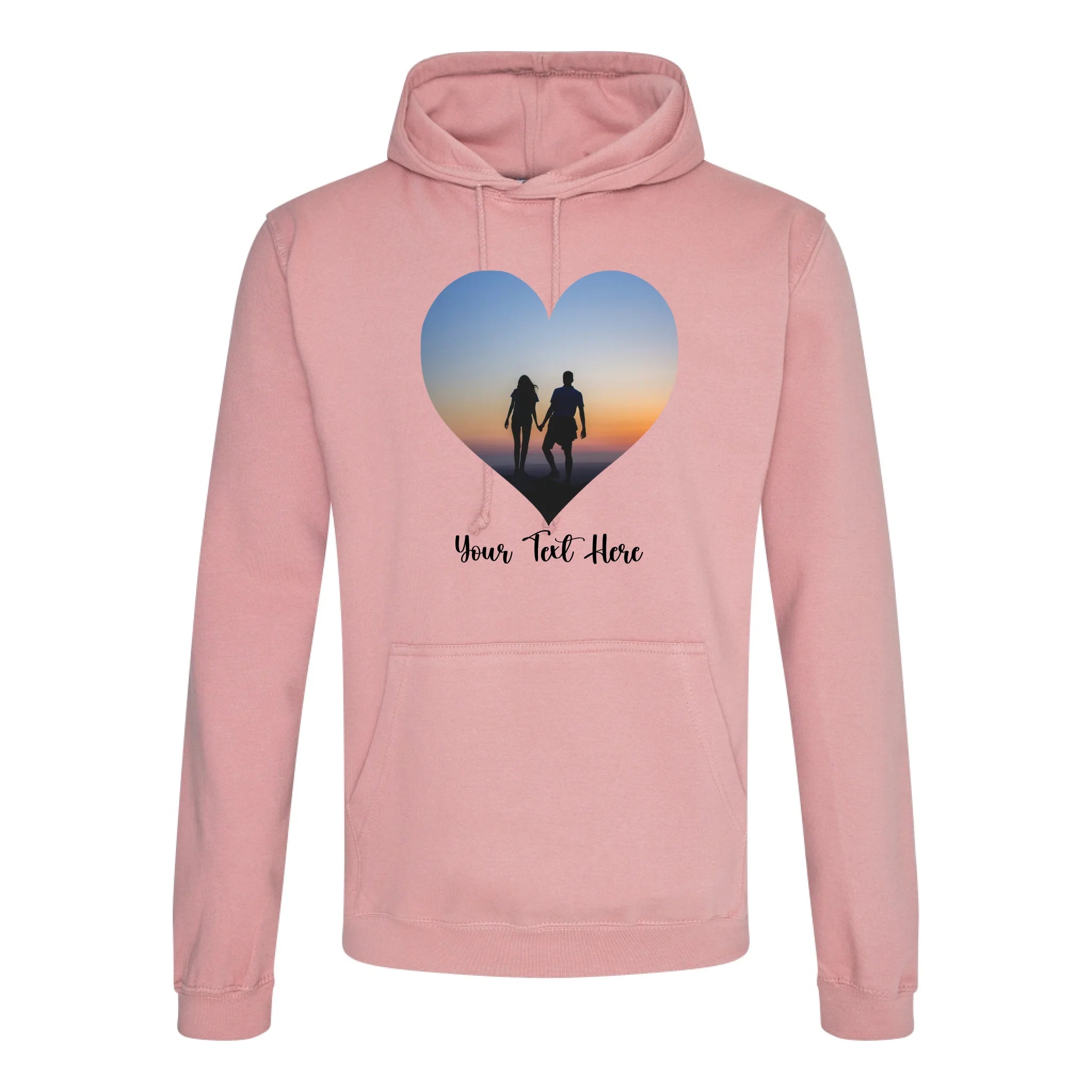 Create a custom hoodie that's uniquely yours. Upload your favourite photo and add personalised text to design a heart-shaped image hoodie that tells your story. Perfect for gifts, matching sets, or celebrating what matters most. Soft, comfortable, and made to order with your personal touch.