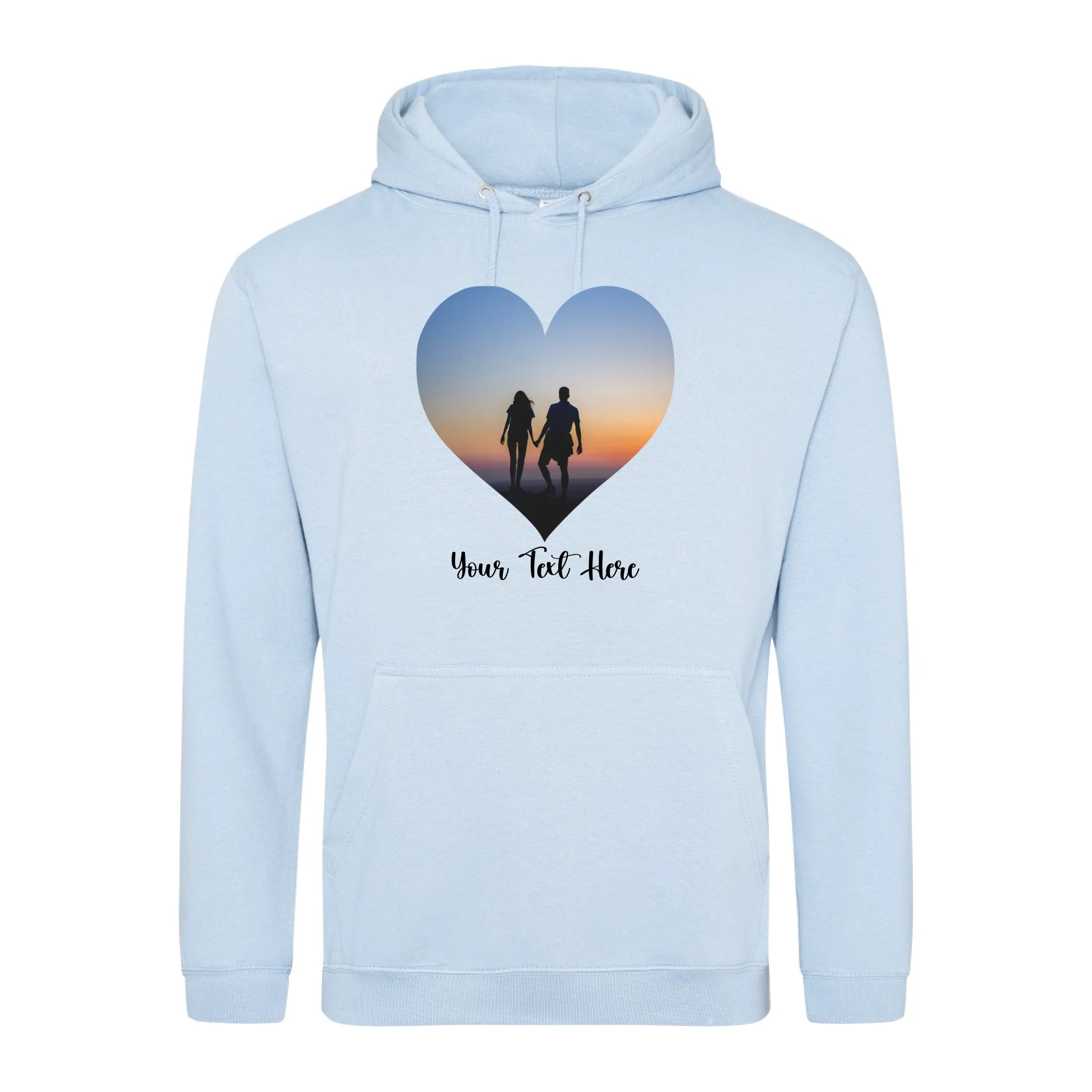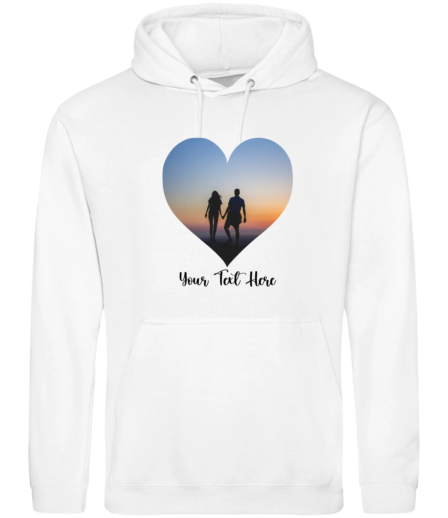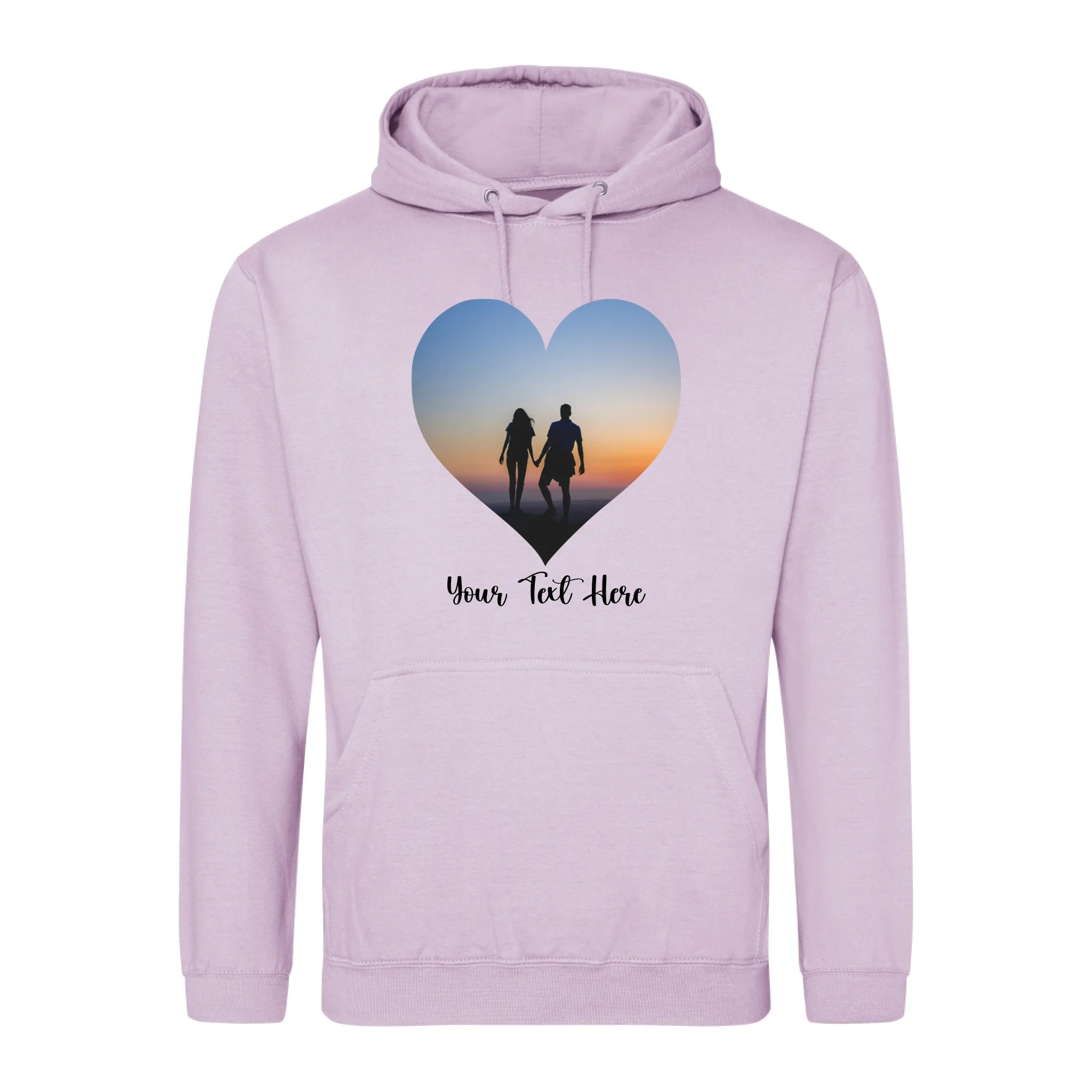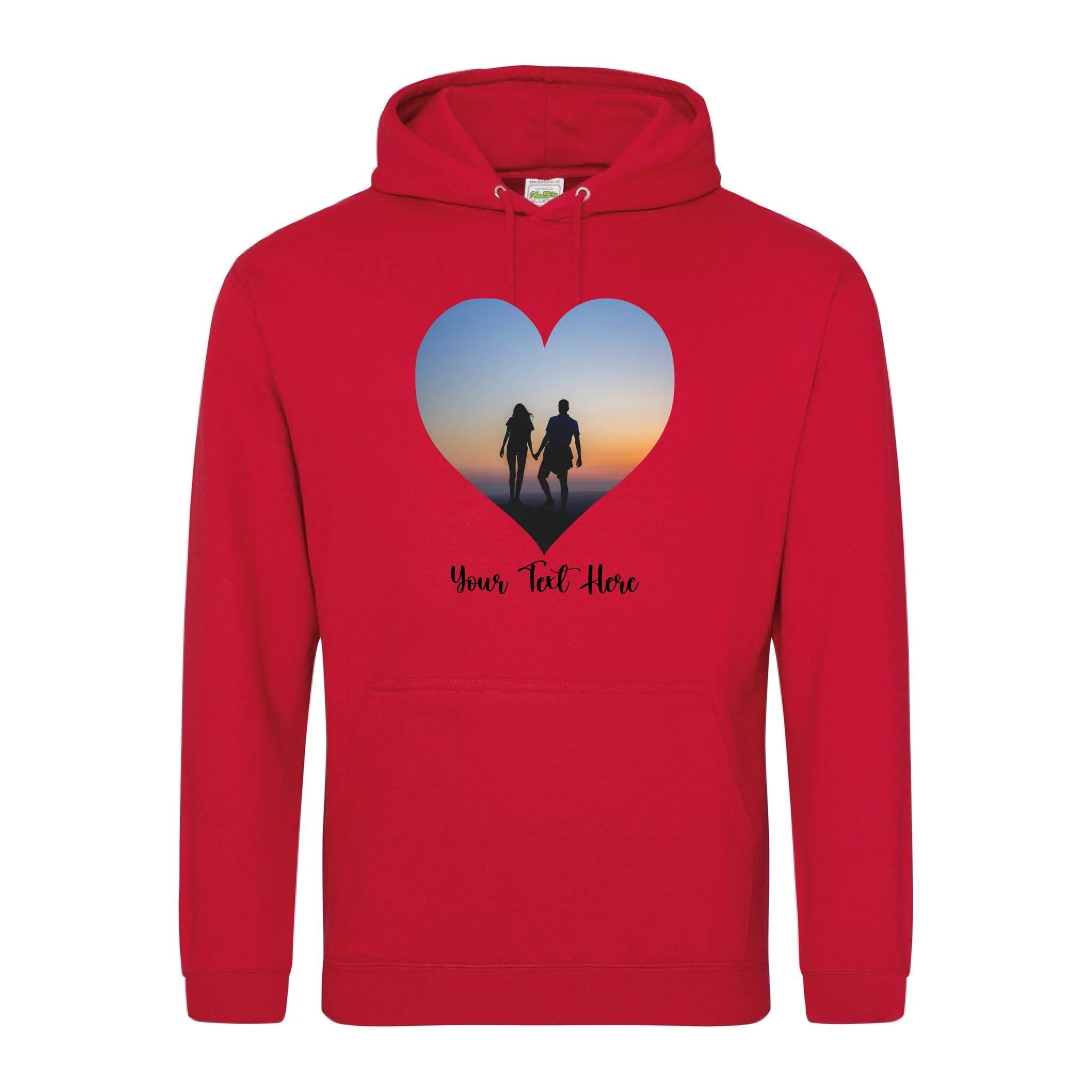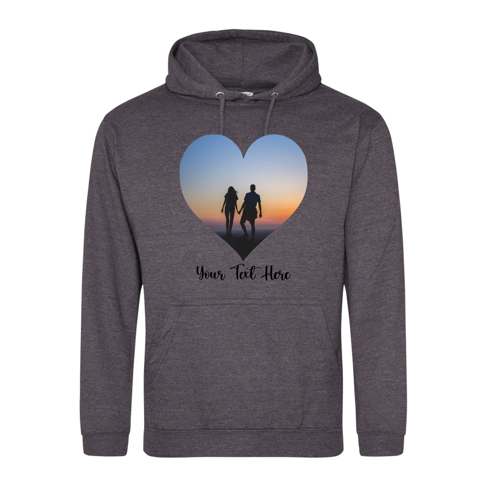 Create a custom hoodie that's uniquely yours. Upload your favourite photo and add personalised text to design a heart-shaped image hoodie that tells your story. Perfect for gifts, matching sets, or celebrating what matters most. Soft, comfortable, and made to order with your personal touch.