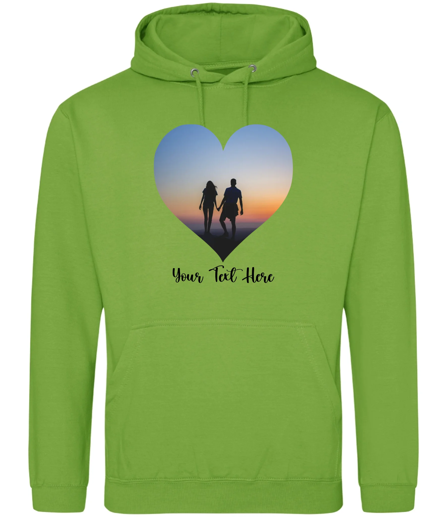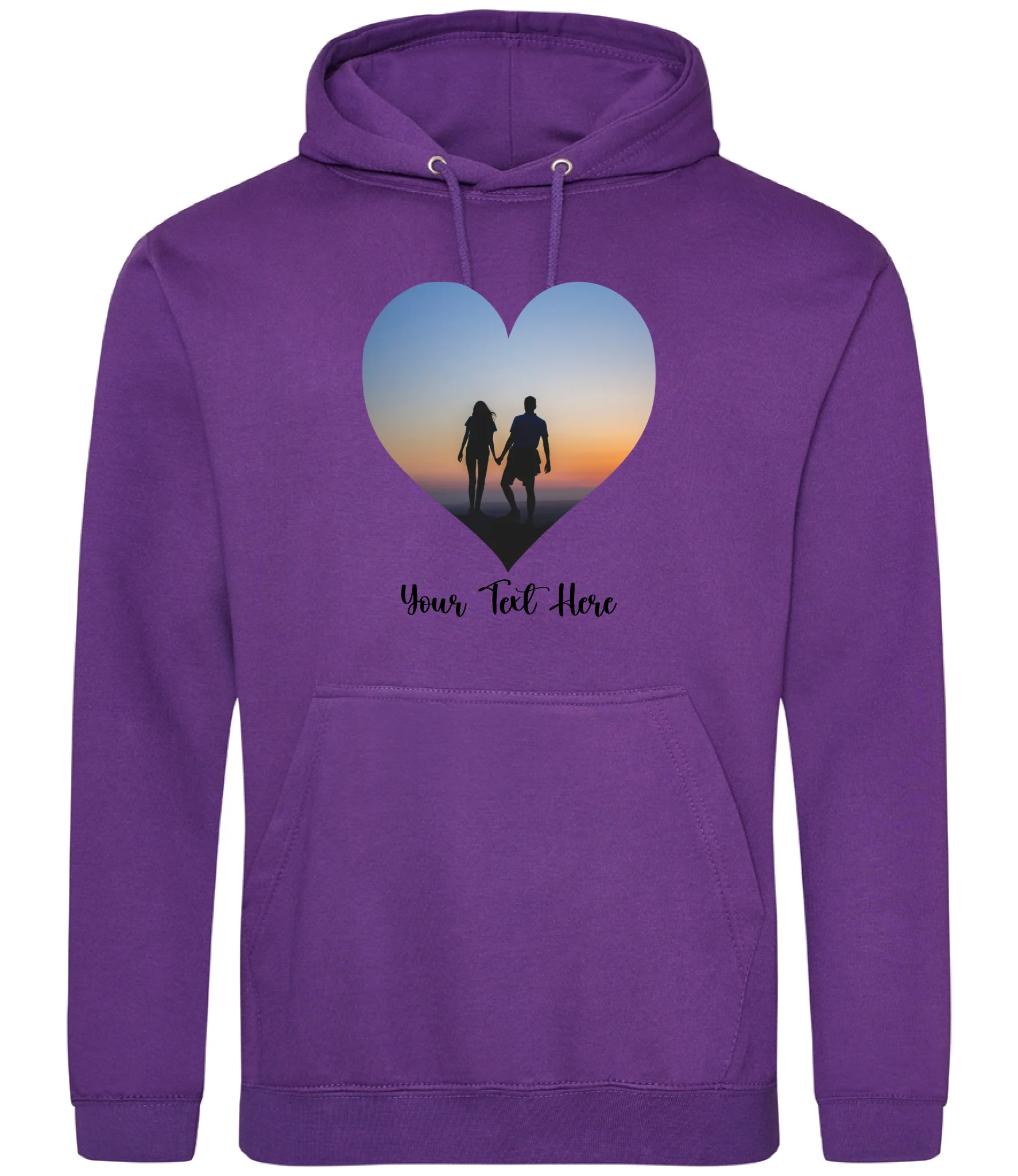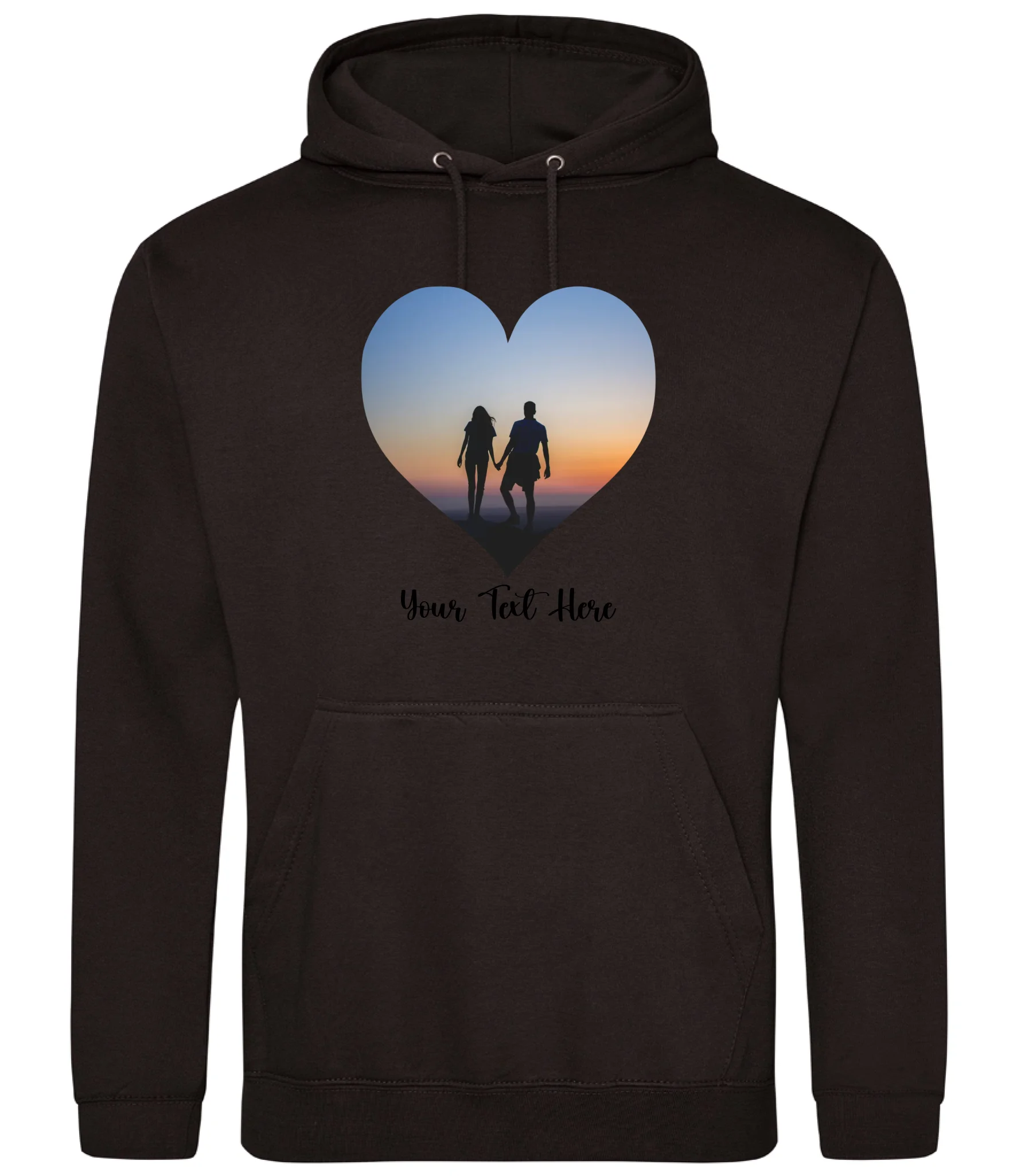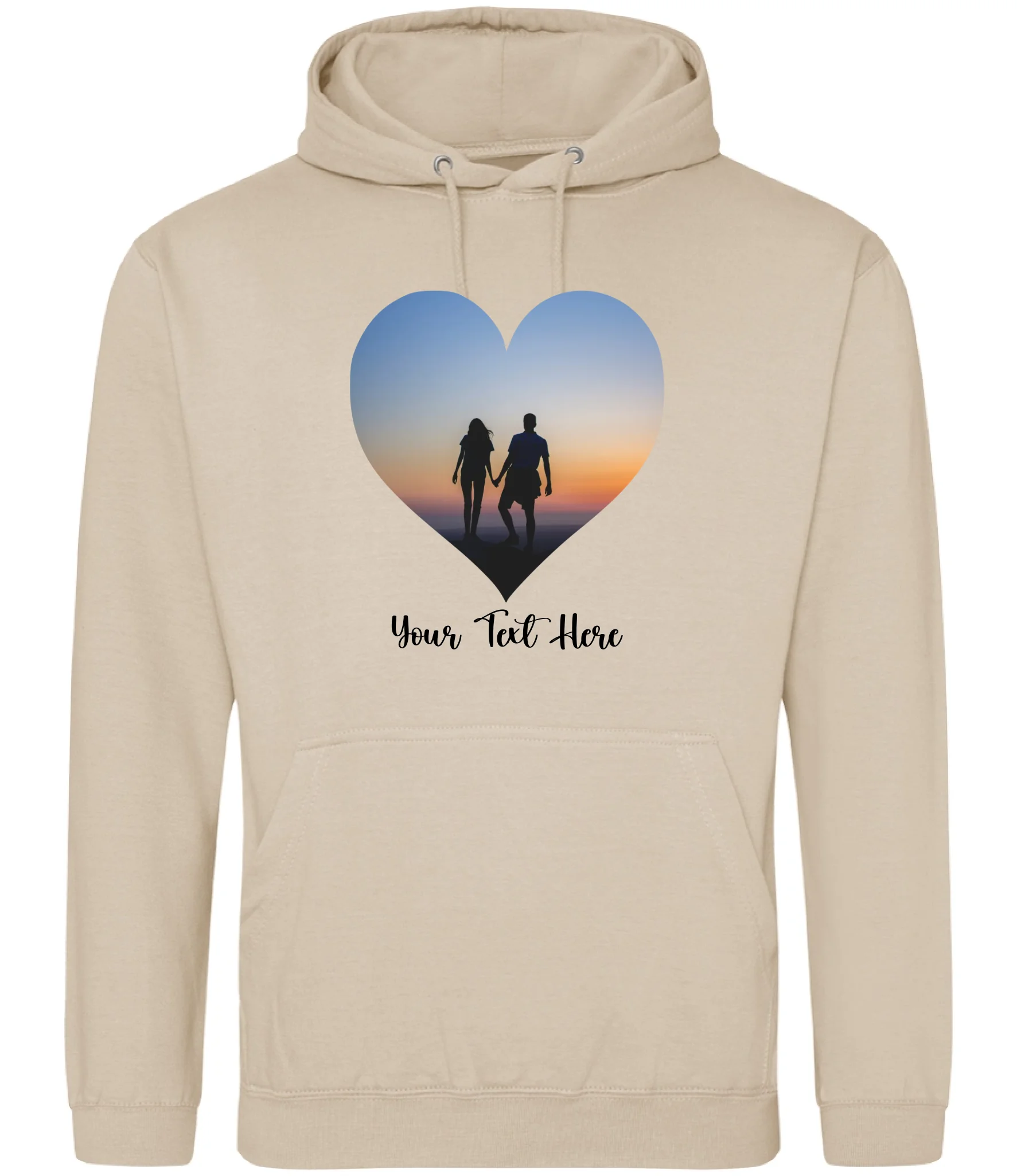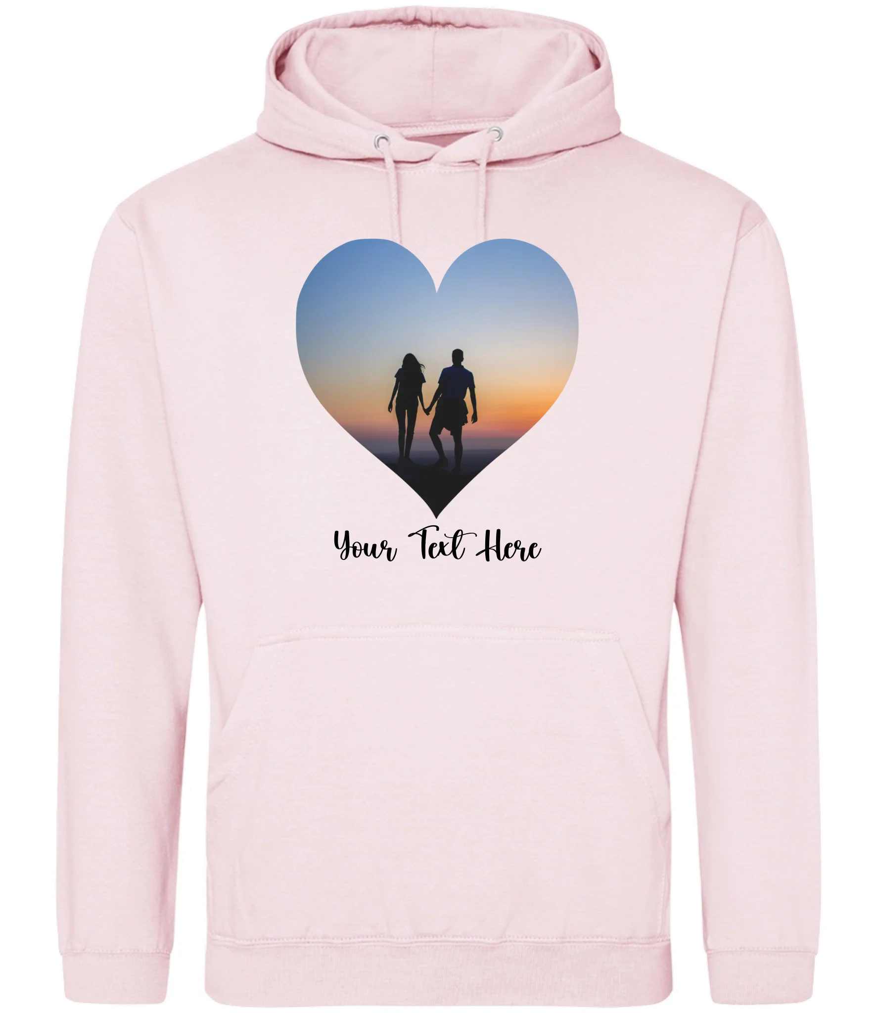 Create a custom hoodie that's uniquely yours. Upload your favourite photo and add personalised text to design a heart-shaped image hoodie that tells your story. Perfect for gifts, matching sets, or celebrating what matters most. Soft, comfortable, and made to order with your personal touch.