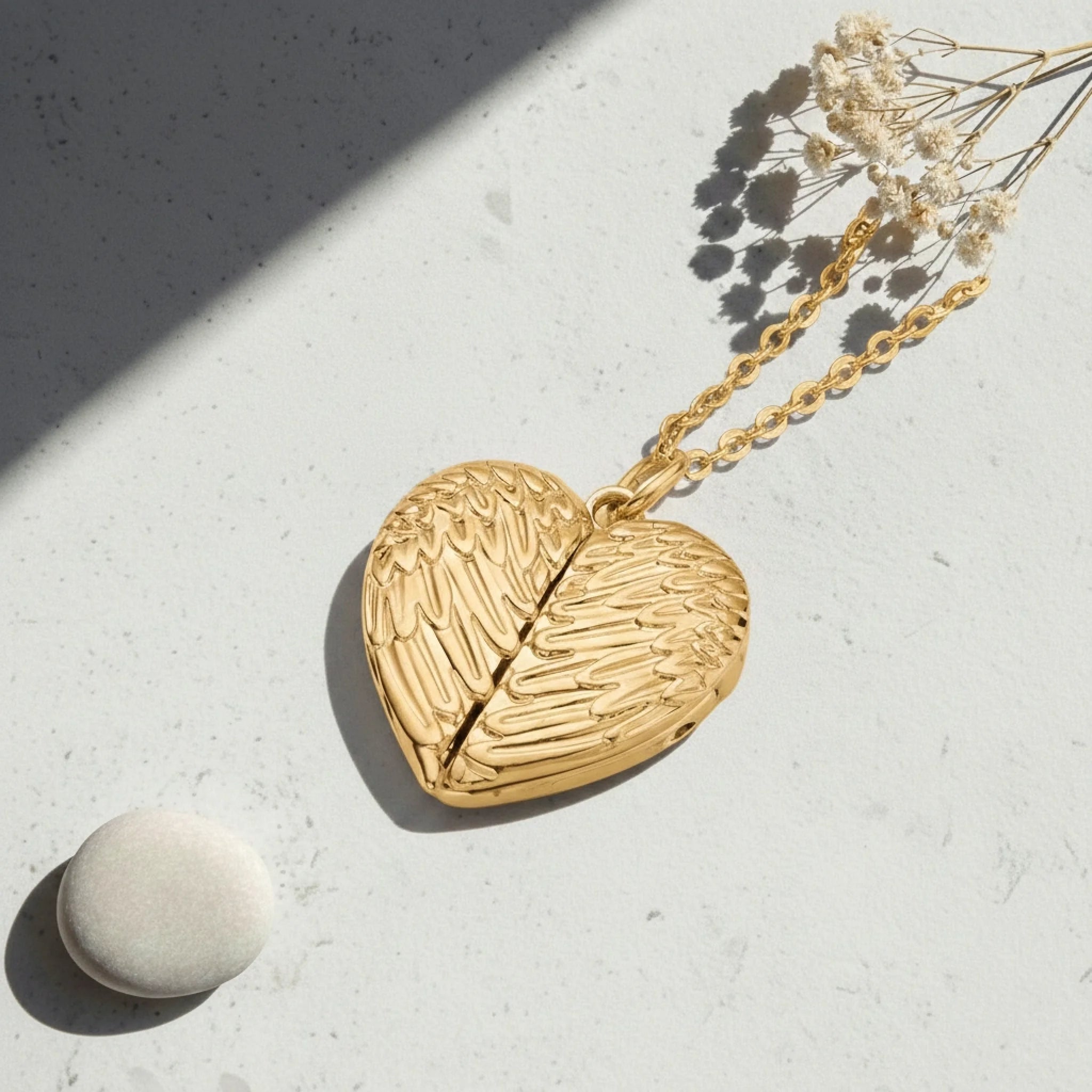 Available in gold or silver, this locket is perfect for memorial keepsakes, loved ones, family photos, or sentimental gifts. The wing design symbolises protection, love, and remembrance, making it a thoughtful and treasured piece.